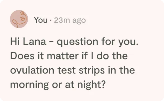Our expert fertility nurses and coaches are on-call and available to answer questions by text or phone any time of day.